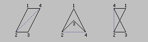 ![]() The drawing shows a convex quadrangle, a concave quadrangle, and a quadrangle with intersecting edges. |